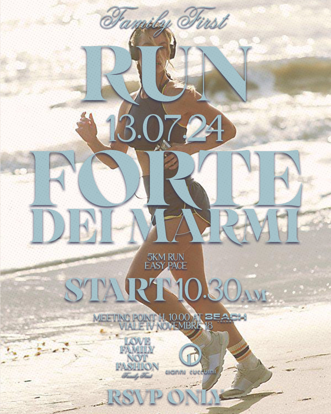 The run consisted of a scenic 5km route near the Beach Club in Forte dei Marmi.
